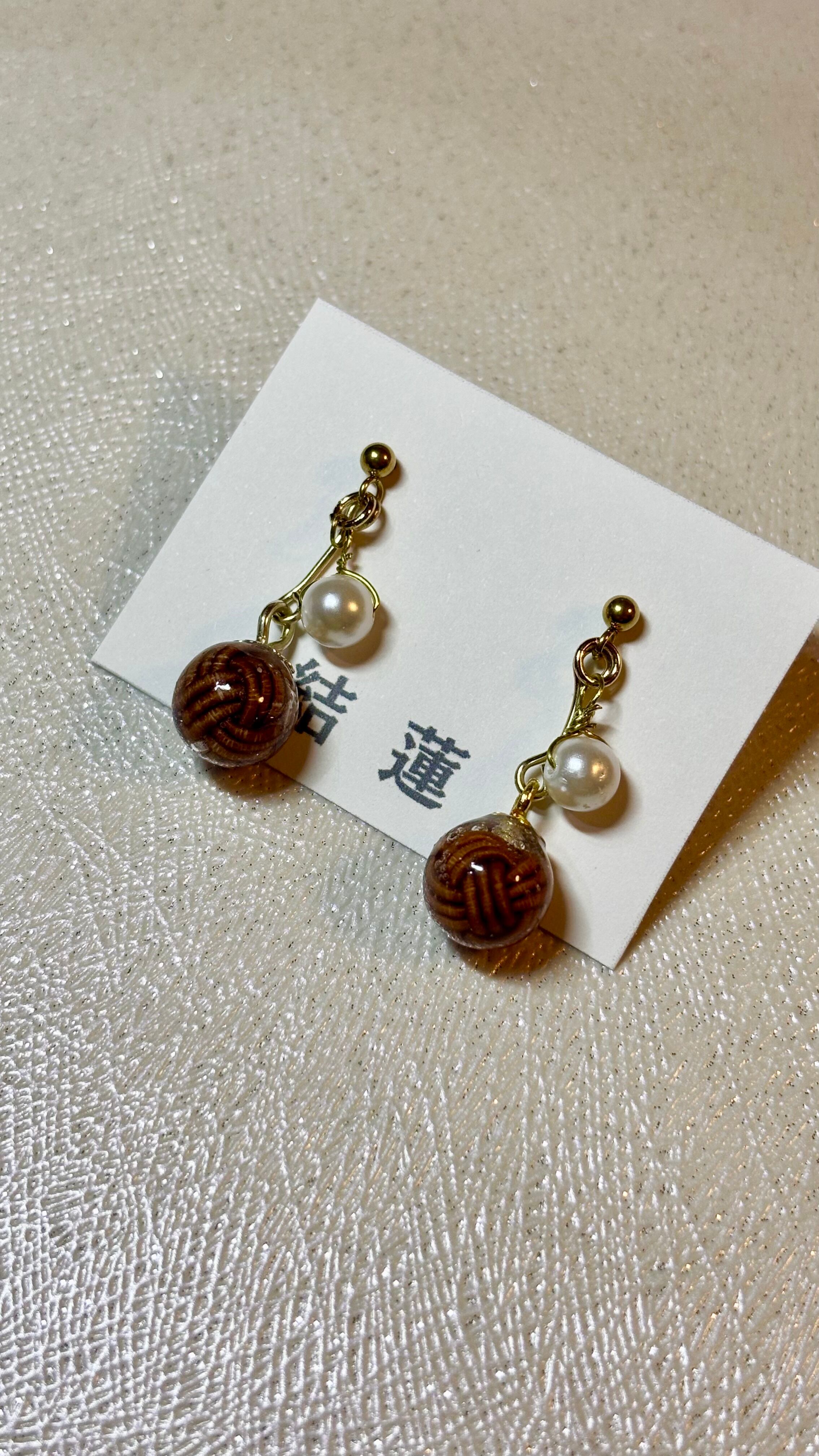 身護玉 コーヒー色は、深みのあるコーヒーカラーのあわじ玉とパールビーズが見事に組み合わさったアイテムです。この特別なデザインは、シックでありながらも華やかさを引き立て、あなたの耳元に小さく軽やかな動きをもたらします!